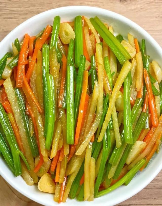 你是不是炒蔬菜只炒一种?其实土豆、胡萝卜、芹菜一起炒,纤维多到能帮肠道“大扫除”!每100克芹菜含1.6克纤维,胡萝卜含1.1克,土豆含0.7克,三种一起吃,比单独吃一种菜通肠快多了,还不用怕吃腻。